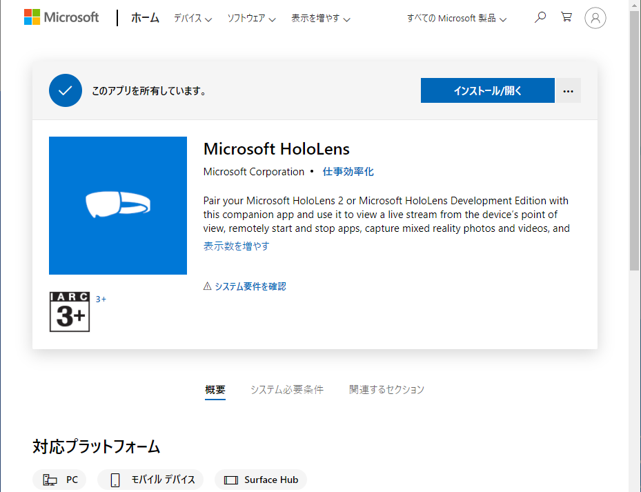 WindowsストアにあるHololensアプリをインストールすると、ポータルと同様にデバイスを制御できるが、微妙に機能が異なる。