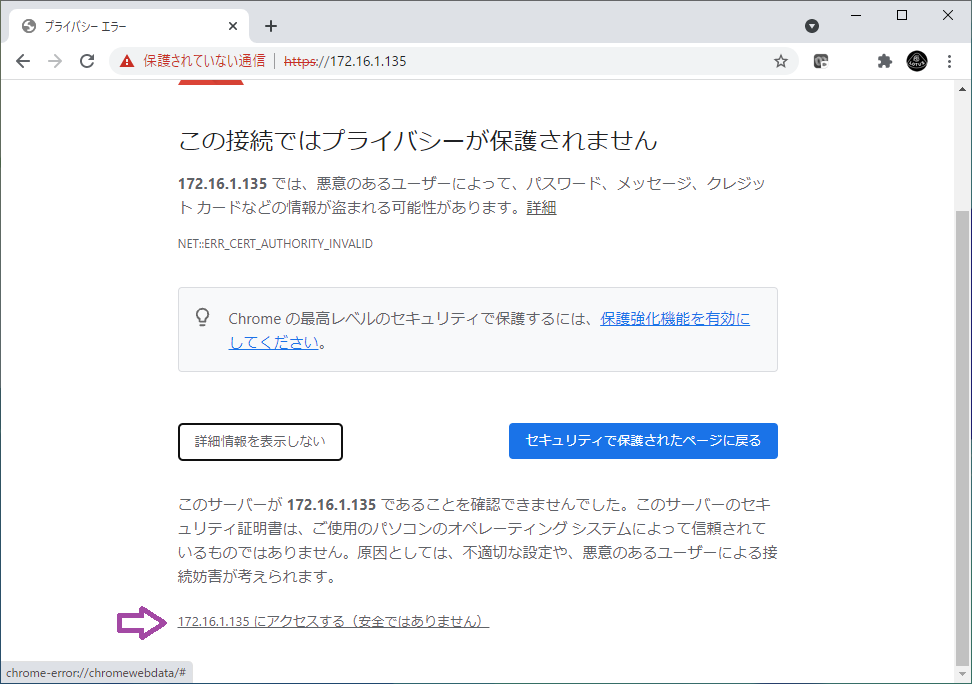 詳細設定を開き、アクセスする(安全ではありません)を選ぶ.