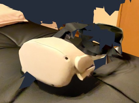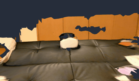 | Oculusがソファと混ざって認識できていない。 | 細部の認識ができてない | いちばん形状が取れている | Oculusのような小物は平滑化されて認識できない。 | 形状まずまずで、テクスチャーが綺麗 |