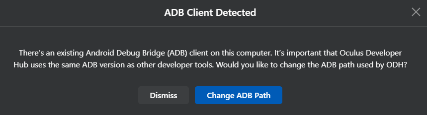 ADB(Android Debug Bridge)を再設定するように指示が出る。