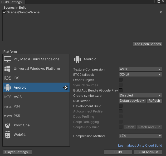 UnityのBuild Setting