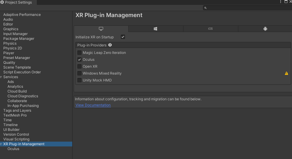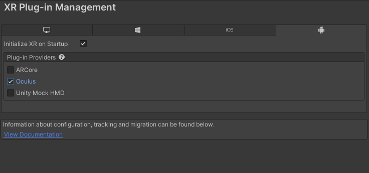 PLayer Settingで、XRpluginのOculusが選択されていることを確認する。