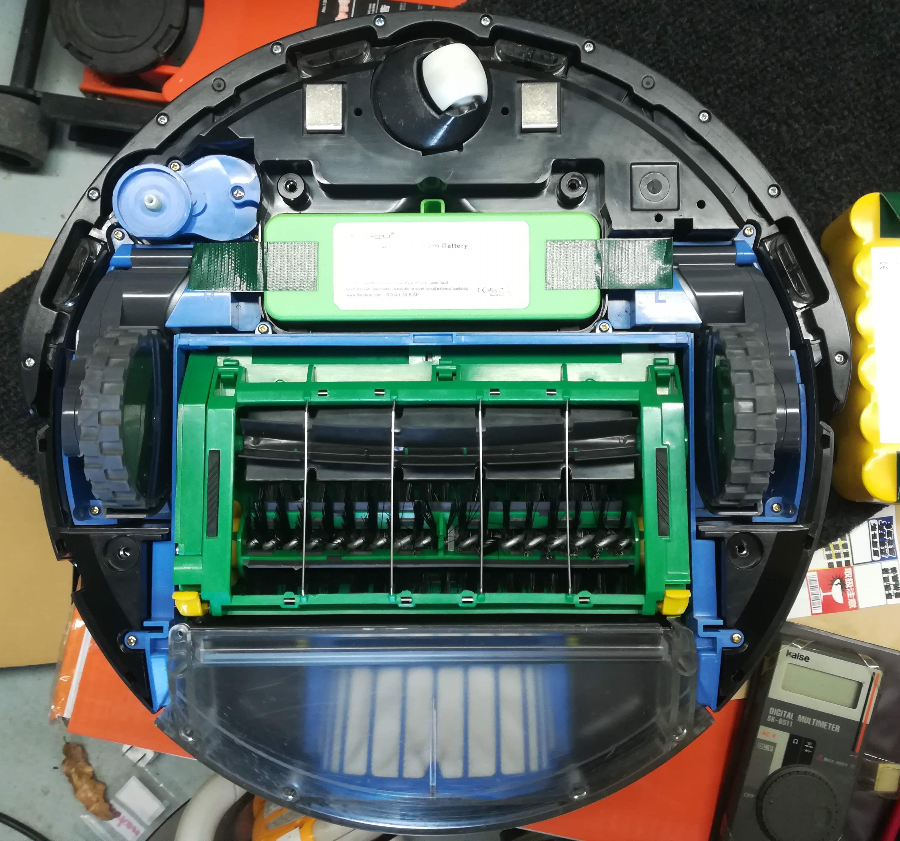 一度電池を交換したが、また充電をしなくなったため、2回目の交換を行った。 蓋を外すと結構ほこりがひどかったので、分解して掃除を行った。 今回はリチウムイオンにしてみた。 交換したリチウムイオン電池↓ 前のバッテリーは定格表示14.4Vに対し1.47Vしかなかった。充電器につないでも無反応。 交換したリチウム電池は表示14.8Vに対し14.5V。