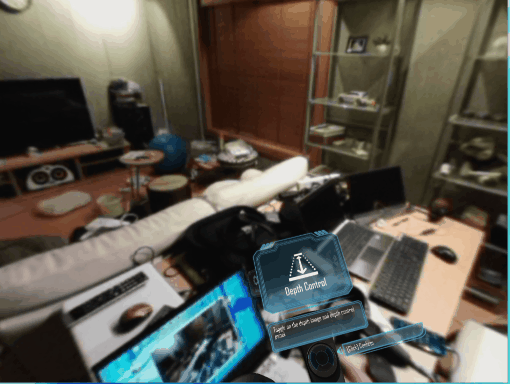 前面ステレオカメラを使ってリアル環境の視界を映したり、空間座標認識したり、アイトラッキングしたりできる。