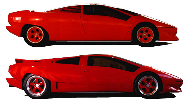 CountachII(上)は、ランボルギーニを買収したクライスラーからエンジニアリング、スタイリング両面から変更するよう指示がなされ、WB拡大、インチアップされたセカンドプロトタイプ(下)が作られました。