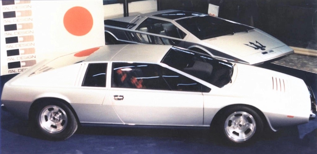'72年発表の プロトタイプ (アルミボディ)から、プロダクションモデルでFRPに製法が変わる際、Maserati Boomerang(写真後ろ)のエッジを強調した形状に変化しています。FRP